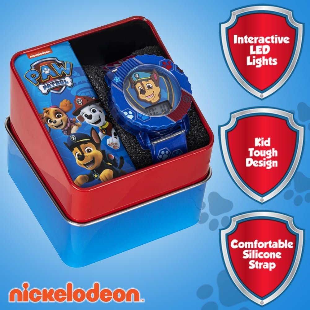 Paw Patrol Kids’ Digital Watch with Blue Case, Comfortable Blue Strap, Easy to Buckle – Official 3D Paw Patrol Character on the Dial, Safe for Children – Model: PAW4015 Nickelodeon On April 1, 1979 at 6 a.m., cable subscribers in Buffalo, New York, and Columbus, Ohio, tuned in to the inaugural broadcast of Nickelodeon, the first all-children’s network in television history. Nick slid into more homes in 1982 with the introduction of SLIME! It encompassed everything that’s great about being a kid in one gooey, green mess: irreverence, hilarity, and the unexpected. Then, in 1983, Nick zeroed in on what they liked about being kids, taking a simple idea and turning it into everything we stand for to this day: Nickelodeon is the place where kids can be kids. And if it’s good for kids, it’s good for Nick. It’s this philosophy that’s helped Nick become an Emmy, Peabody, and Parents’ Choice Award-winning network. MZ Berger and Company In 1950, Michael Zachary Berger and Joseph Mermelstein set out with a goal of creating quality timepieces, and their small showroom on 5th Avenue became the birthplace of MZ Berger and Company. Now, decades later, MZB is known as one of the world’s leading watch designers and manufacturers. Still, this family-owned business maintains the same priority: to provide timepieces and accessories to people all over the world. NickelodeonOn April 1, 1979 at 6 a.m., cable subscribers in Buffalo, New York, and Columbus, Ohio, tuned in to the inaugural broadcast of Nickelodeon, the first all-children’s network in television history. Nick slid into more homes in 1982 with the introduction of SLIME! It encompassed everything that’s great about being a kid in one gooey, green mess: irreverence, hilarity, and the unexpected. Then, in 1983, Nick zeroed in on what they liked about being kids, taking a simple idea and turning it into everything we stand for to this day: Nickelodeon is the place where kids can be kids. And if it’s good for kids, it’s good for Nick. It’s this philosophy that’s helped Nick become an Emmy, Peabody, and Parents’ Choice Award-winning network.MZ Berger & CompanyIn 1950, Michael Zachary Berger and Joseph Mermelstein set out with a goal of creating quality timepieces, and their small showroom on 5th Avenue became the birthplace of MZ Berger & Company. Now, decades later, MZB is known as one of the world’s leading watch designers and manufacturers. Still, this family-owned business maintains the same priority: to provide high-quality timepieces and accessories to people all over the world. P.when(‘A’).execute(function(A) { A.on(‘a:expander:toggle_description:toggle:collapse’, function(data) { window.scroll(0, data.expander.$expander[0].offsetTop-100); }); }); Chase with Shield printed with chase and marshall printed on band See more.